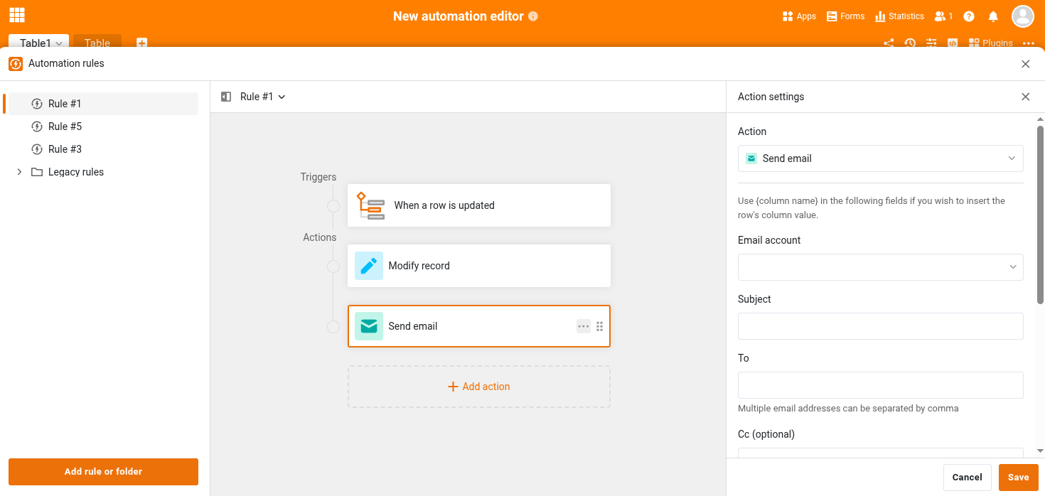 Even though the actions in an automation seem to be computed in order, it seems that they do not complete beforethe next one starts. In particular: If the “edit record” action changes a column’s value, a subsequent “send mail“ action which sends column values does not seem to use the changed value.