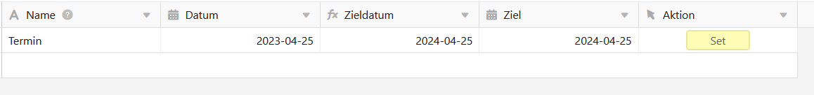 It is because Ziel is not a fix date but just the copy of the calculated value. I’d hide the column Zieldatum in the final version of course.