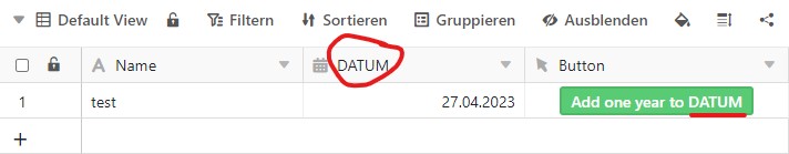 Now you can assign the javascript to the button and simply copy the value from “Zieldatum” to the column you’d like to have it in, for example into “Ziel”.