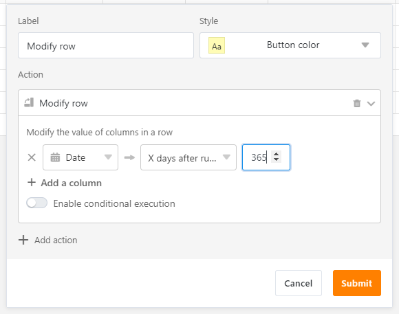 @FamilyBikes In SeaTable 4.1, which we released today, you don’t even need a script anymore. The “Modify row” button action now also supports dynamic date values (see below).