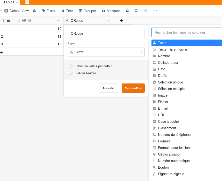 Hi @Productivix, and welcome to the SeaTable forum. SeaTable currently doesn’t have a barcode/QR code column type, but you can still actually deal with such data with a text field and some simple script: