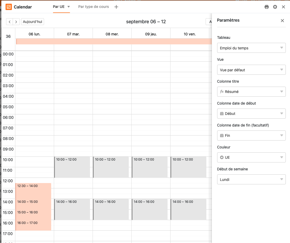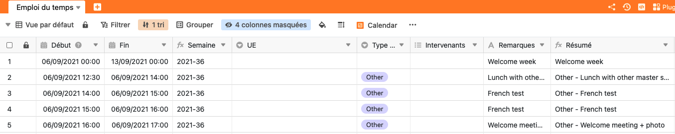 In particular I have a summary (résumé) field (see below) and the calendar view does not want to show it in the title of the events (but it works with the week (semaine) field)…