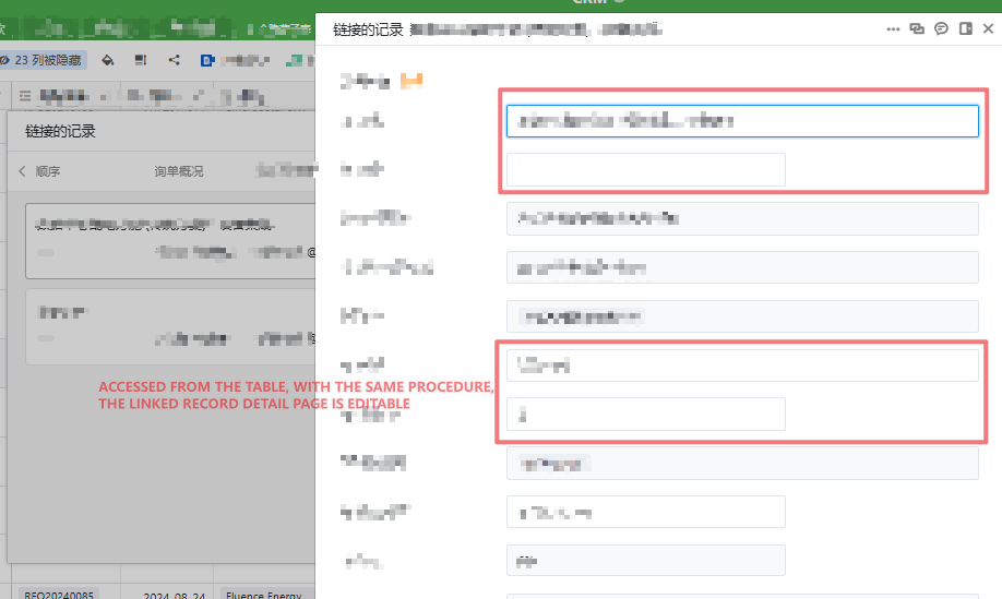 With the same procedure, accessed via table (instead of app), the link detail page is editable: