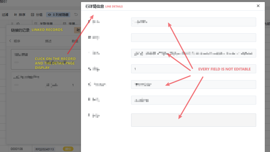 - I click on the link records and the record detail pops up.