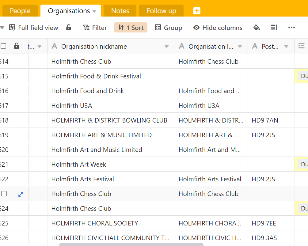 I have a table of local community organisations. Much of the data is imported from spreadsheets.