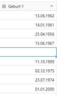 I have a column defined as a date.It has a format DD.MM.JJJJ (German). Some dates work as a typed in input and some don’t. Haven’t found out a pattern yet, why this might not be working.