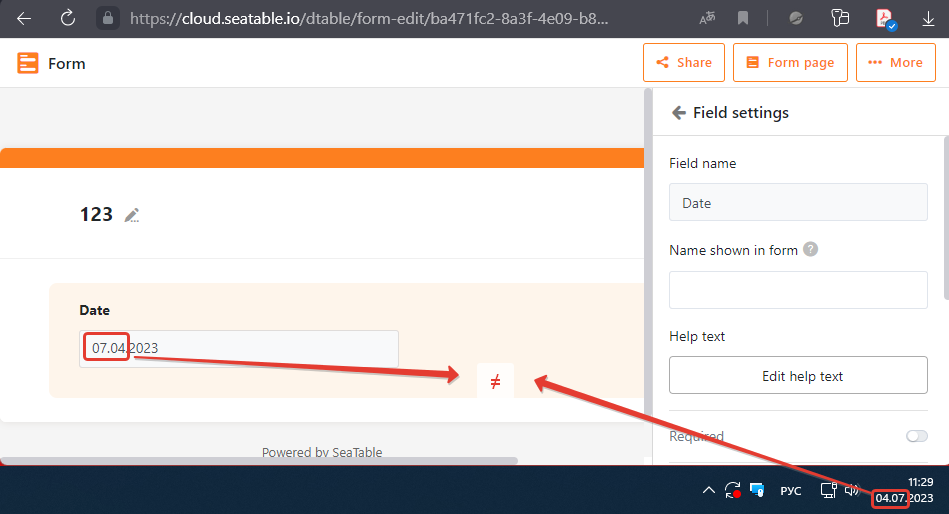 When filling out the form, April 4 is indicated by default instead of July 7, when the “Current date” parameter is set. Tested, including in the cloud version.
