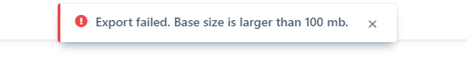Sorry for the late reply: Yes, unfortunately, you cannot export bases larger than 100MB.