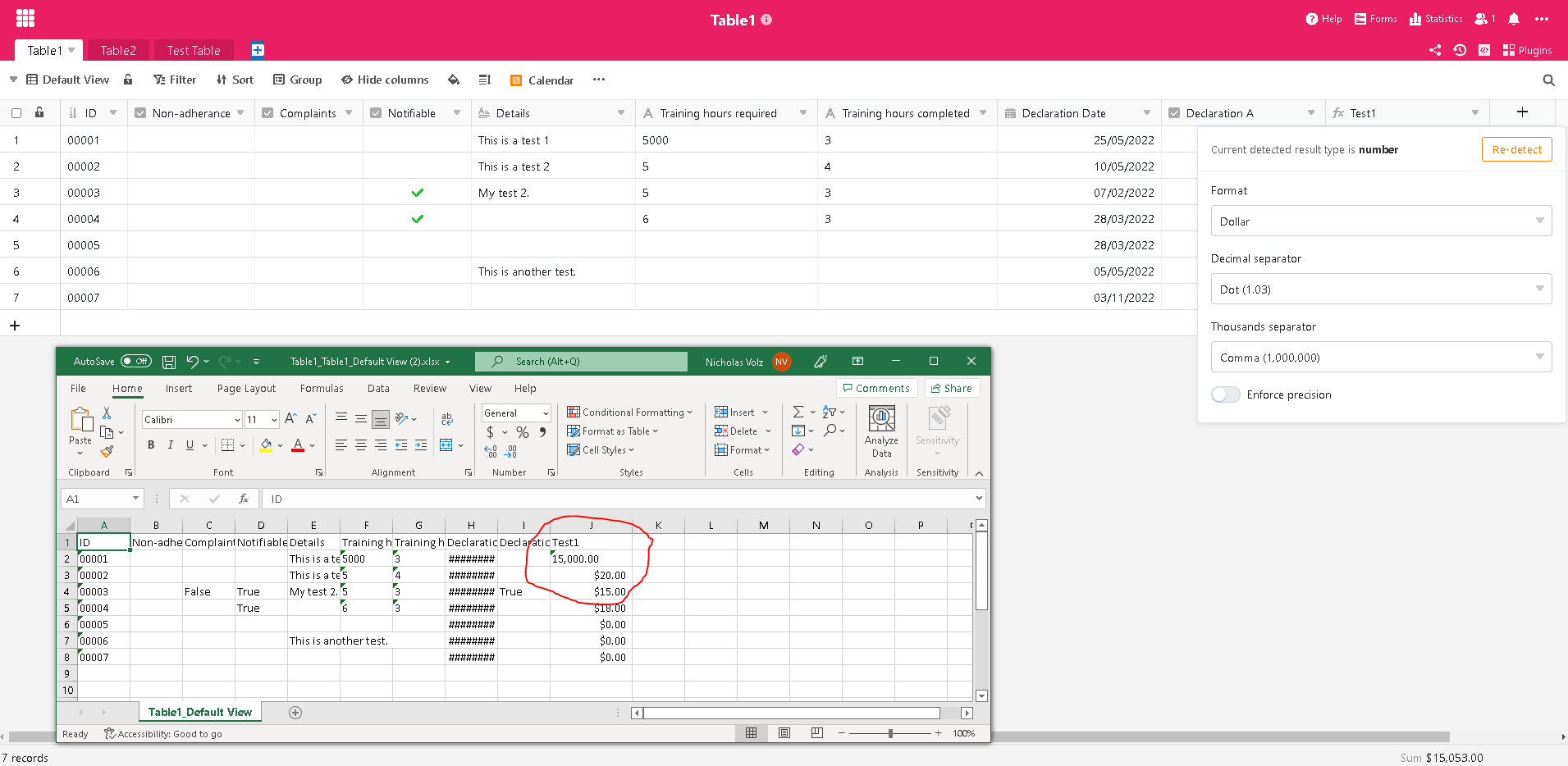 I have a column which is set as a formula. Its format is set as dollar. Its thousands separator is set as comma.