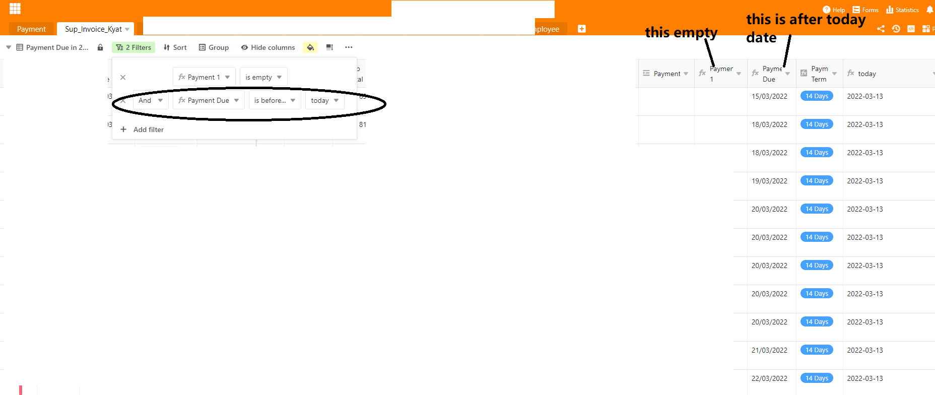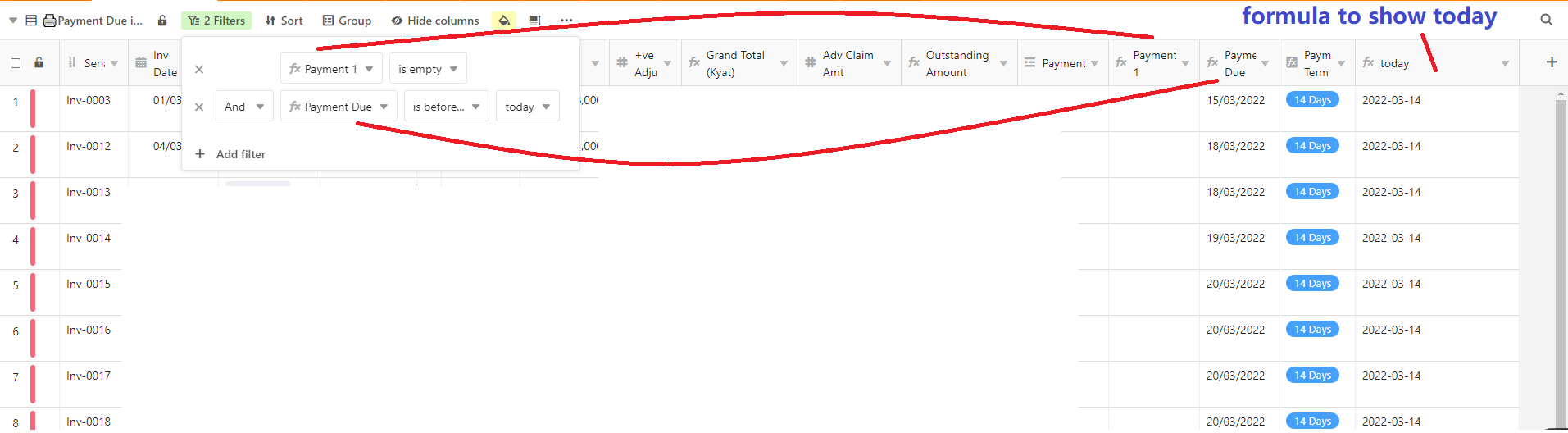 Since all payment due date is after today, my filter rule should return me a blank screen. but it return some values as shown below.