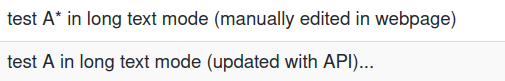 if I use the seatable_api to append some rows with base.append_row, and the text contains literal asterisks (*) instead of markup notation, the “long text” cell will show no asterisk and a “…” at the end of the text. See the screenshot.