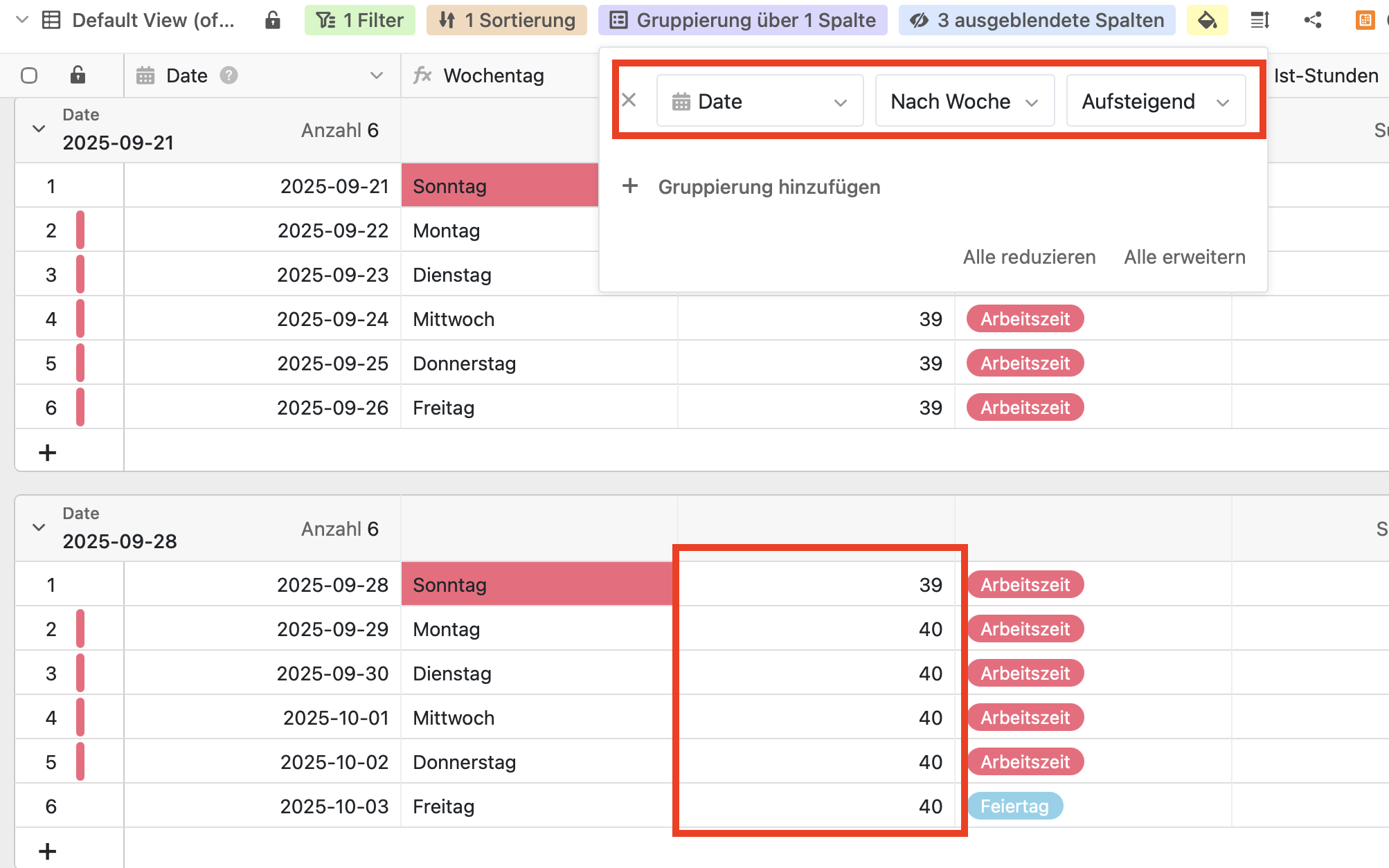 There’s actually a setting allowing you to change the first date of the week in a base: