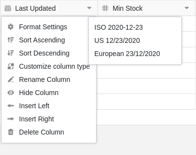Thereofre I try to open the table in browser and try to choose the date format as shown in this below picture: