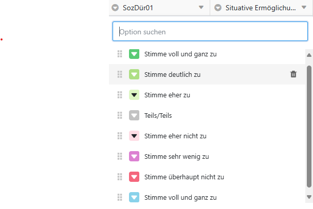 Die beiden Strings “Stimme voll und ganz zu”, auch wenn sie gleich aussehen, sind wohl nicht identisch. Ein einzelnes Leerzeichen oder ein nicht angezeigtes Sonderzeichen kann den Unterschied ausmachen.