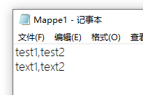 Two rows, all the data is text and the columns are separated with a ‘,’: