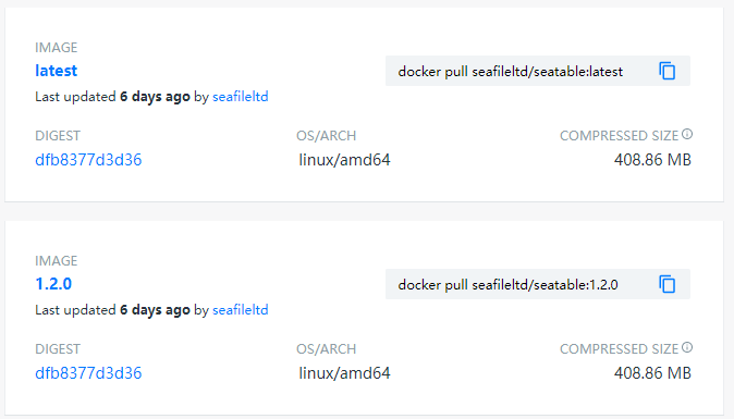 https://hub.docker.com/r/seafileltd/seatable/tags