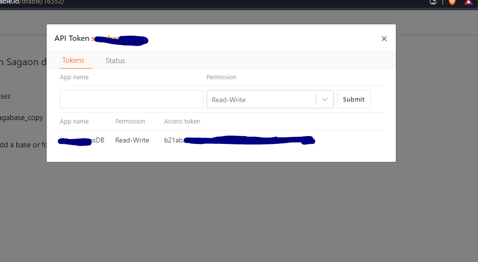 I see. Although it says “access token” on this dialogue, it’s not the access token you need for this API request.