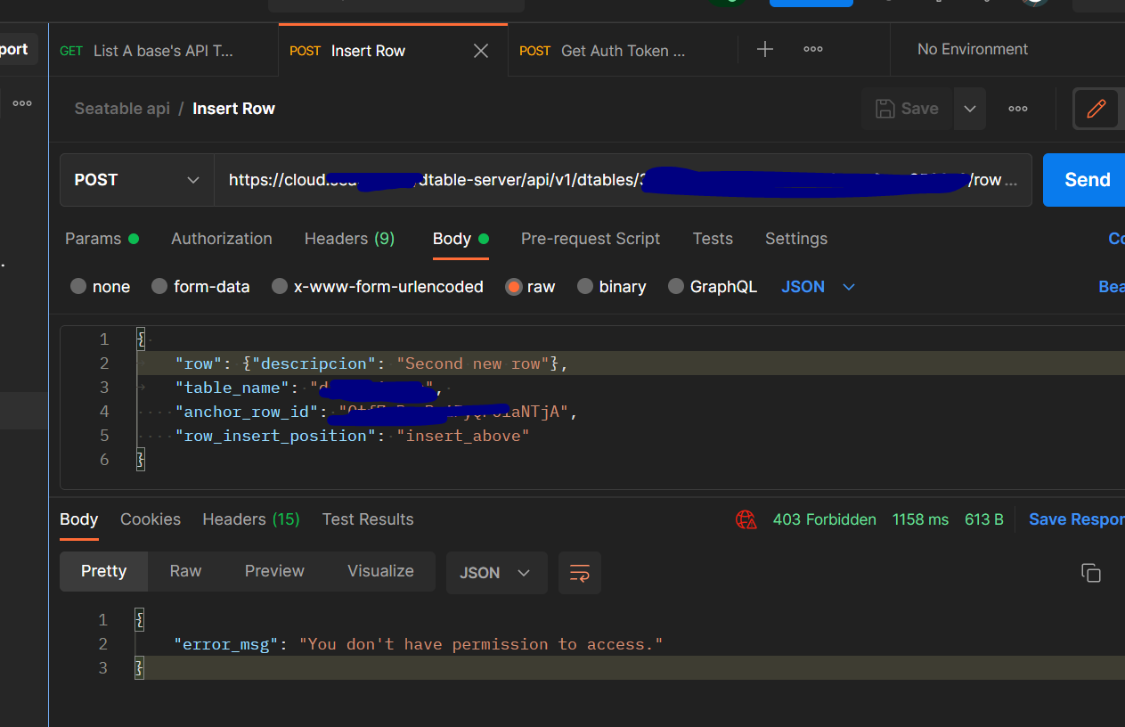 I’m triying to insert a row, with the api but it say “You don’t have permission to access”,