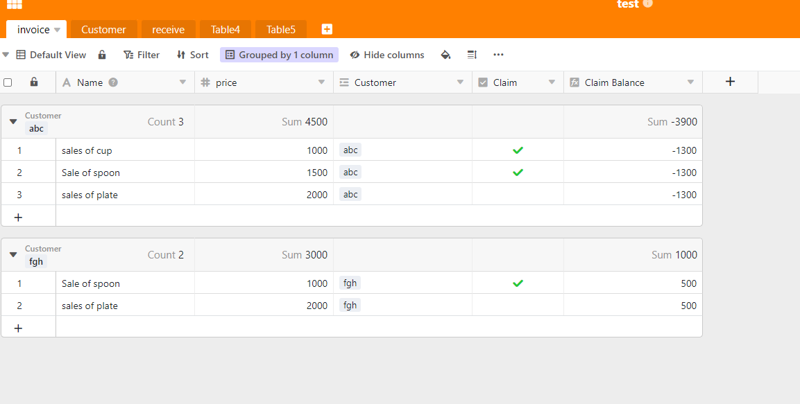 However, from customer table, we can only see net outstanding amount from each customer instead of understanding which invoice is yet to pay. Therefore, i have created a check box ( “Claim” ) under Invoice table to deduct off from total receive for each customer.