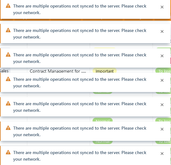 There are multiple operations not synced to the server. Please check your network.