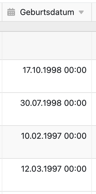 I’d like to format the column to only show the date, but when I deselect “minutengenau” (“to the minute” or similar), the complete column gets emptied.