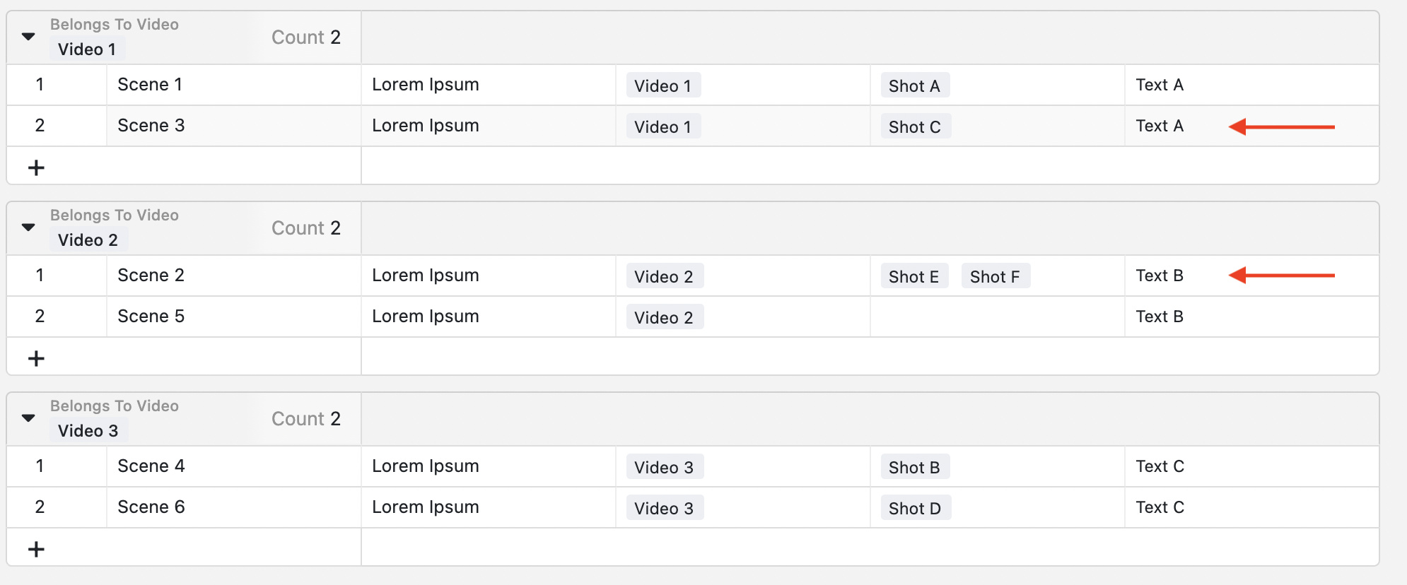 As you can see in the details view between Scene 3 and Scene 2 the content stays the same although it should be different as displayed in the tables view.