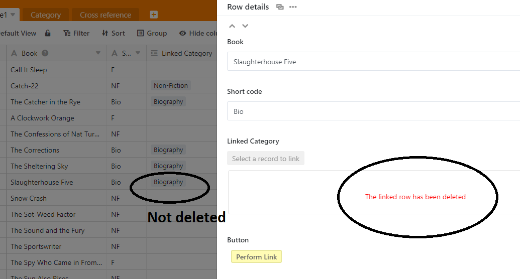 The only odd thing is that the row details pop-up shows “The linked row has been deleted”, even though it has not. Everything else behaves as expected. My question is, am I doing something wrong in my script, or is this a bug?