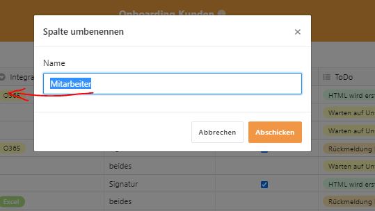 Die Umbennung einer Spalte erfolgt beispielsweise nicht mehr per Modal, sondern quasi in-line.