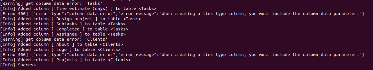 However, it didn’t affect the result. If you encounter such an error message, check your link columns. If everything is OK, you can ignore this error. It’s only meaningful if the link columns cannot be created correctly.