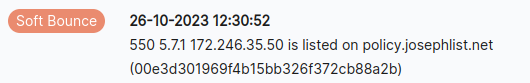 As soon as josephlist.net removes our mail server from their list, you will receive our mails again.