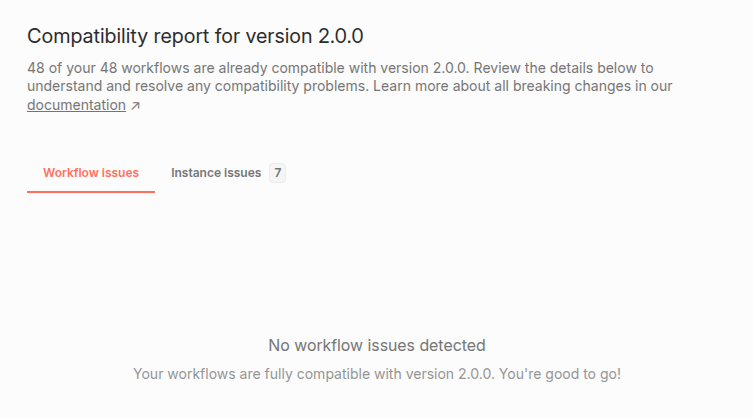 In addition to @Ben’s recommendations, I suggest first upgrading to the latest 1.x release (v1.123.10 ). Then, open the Compatibility Report (n8n → Settings → Migration Report) to ensure your setup is ready for the major version jump.