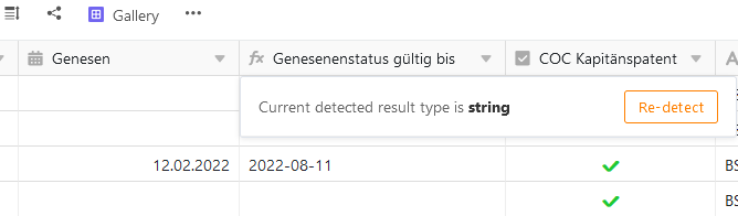 Both columns {letzte C-Impfung} and {Genesen} are date columns.