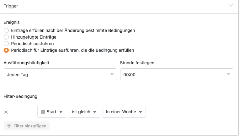 Important: This solution only works with SeaTable Cloud Enterprise because automations are required.