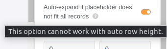you are talking about setting the “Row height” to Auto under “Font and row height” and also using the “Auto expand” function. This combination is not possible and a corresponding message appears, the switch cannot be activated and the option is grayed out: