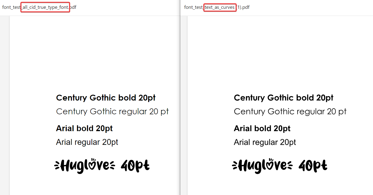 We tested the reproduction in SeaTable with embedded (CID TTF) and text as curve font out of Affinity Designer 1.10.6(PDFlib+PDI 9.3.1-i ) .Even with a decidedly custom font like “huglove” we got a decent enough reproduction.