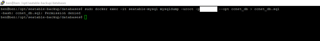 I assume the user “ben” does not have write-access to the directory /opt/seatable/seatable-backup/databases.