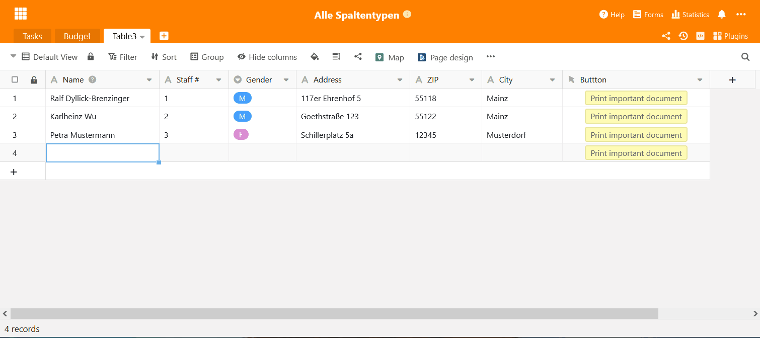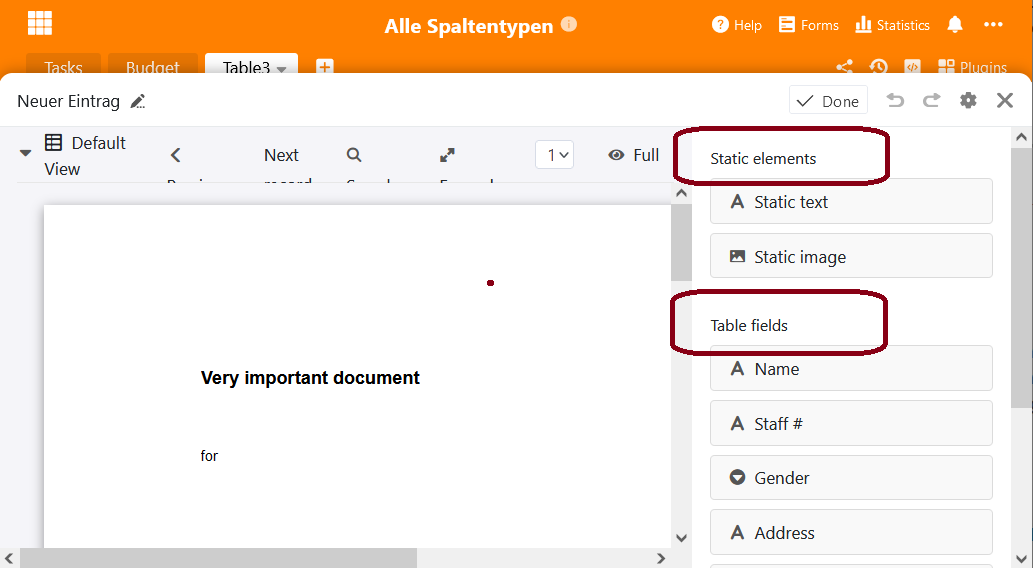 Anticipating a follow-up question: Unfortunately, you cannot create a PDF using the page design plugin and save it straight in a file column in a SeaTable table. This is not supported yet.
