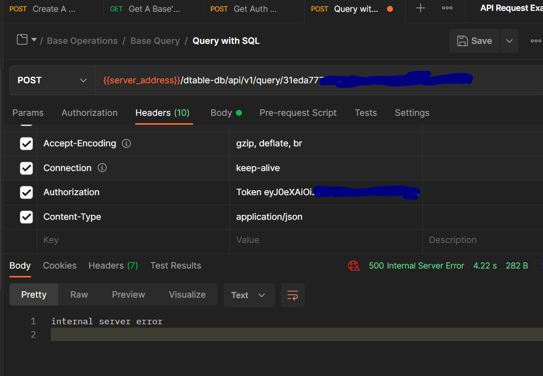 Hi, I’m having problems when a do a request to the endpoint, it give me 500 status error, I have put the base token in the header