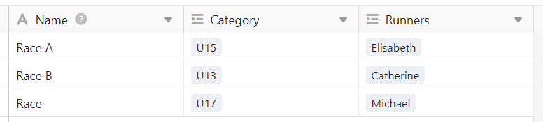 I want to select Runners for Race “Race A” of category U15 out the list of all U15 runners, not from all runners, and not from U17 runners.