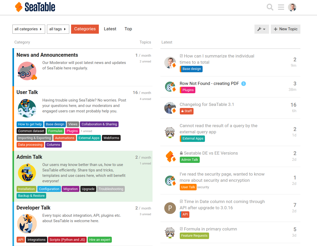 We all know that SeaTable Community Forum is a significant platform for information exchange around SeaTable. In the next few days we will optimize and adjust the design and structure of our Discourse Forum.