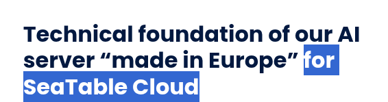 Data protection is a top priority at SeaTable. For SeaTable Cloud, we will operate our own AI server hosted at Hetzner in Germany. This ensures that no data ends up with US providers such as Google or OpenAI. And you can do the same! Self-hosters can connect virtually any LLM and thus retain full control over who is allowed to process their data.