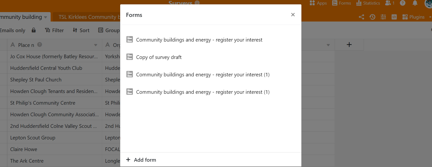 I have a form as a survey of community buildings.