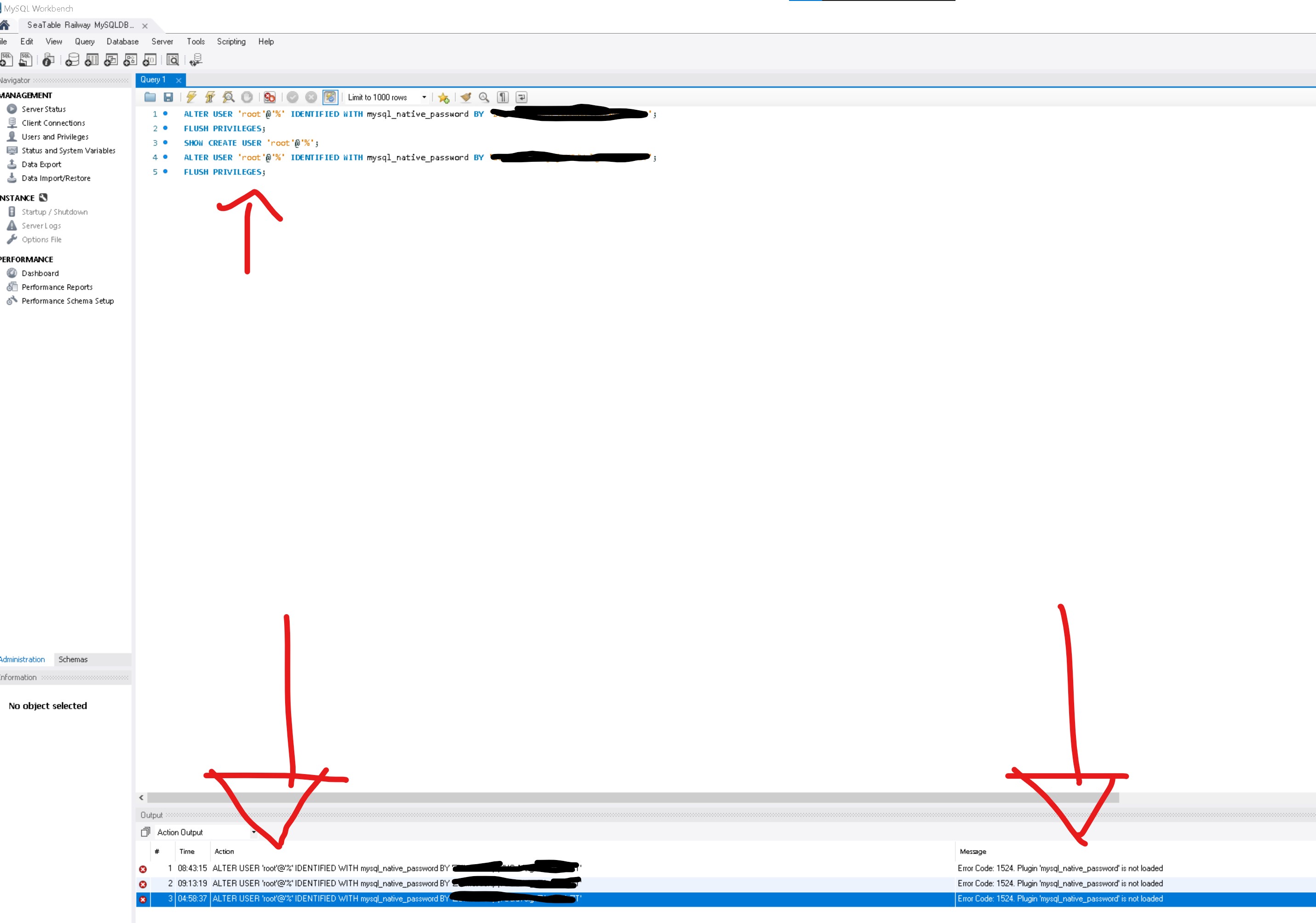 1. Error from MySQL Server when trying ALTER USER: