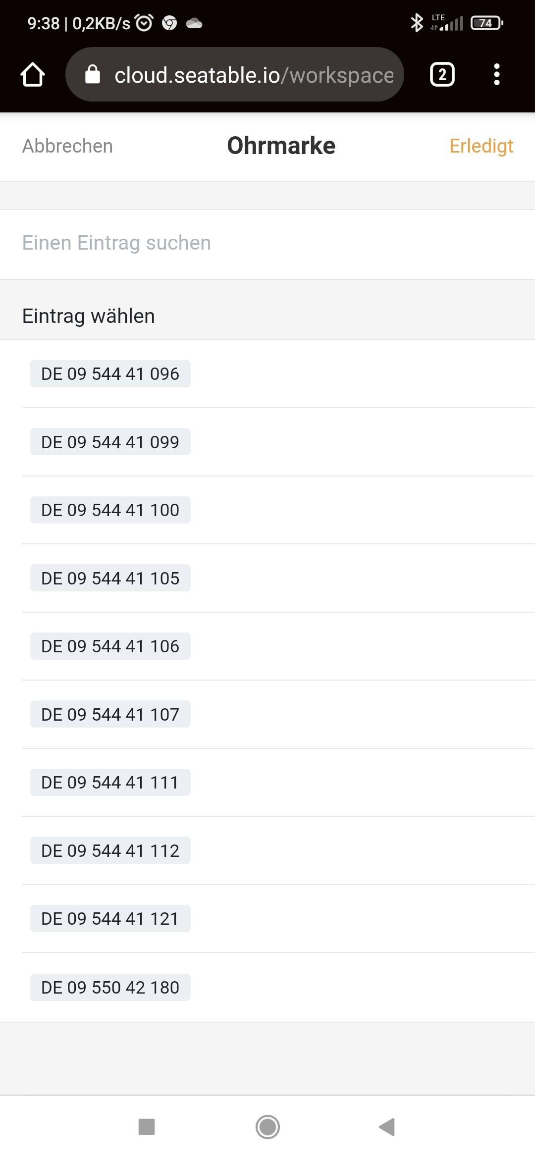 The desired entry could be selected via the search field.