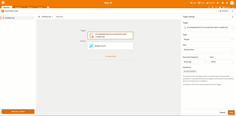 => the window should be a bit wider. Please note that this modification is not lasting at all: if you close the window or refresh the page and re-open it, it will be narrow again and you’ll have to redo it. Therefore, if after executing the command the automation rules editor window is no longer usable (too narrow, too wide, etc.), simply refresh the page and it will be at its normal size the next time you open it.