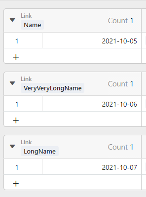 As you can see, the shortest family name, “Name”, is cropped to one single letter, which is not really convenient for differentiation ! Ok, I admit (or rather I hope), nobody is called “Name” but it can be complicated with short identifiers anyway. Is it possible to crop the grouping parameter only if it is longer than a defined number of characters ? I would be great(er than it is already !).