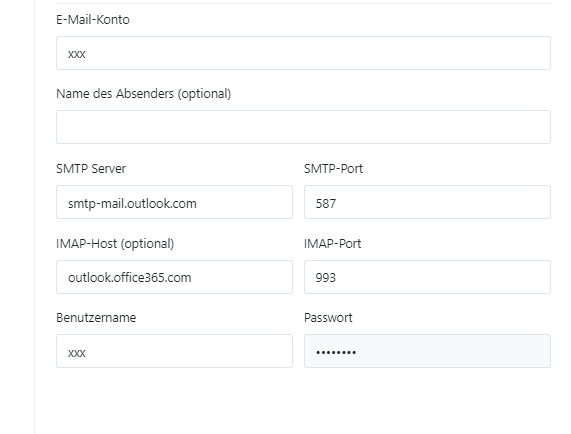 This is our setup. Considering that Mail and Password are correct, this is how it should work right? Cause when we try to send a test mail via the third-party-integration, it always says “wrong username and/or password” which is definitely not the case …
