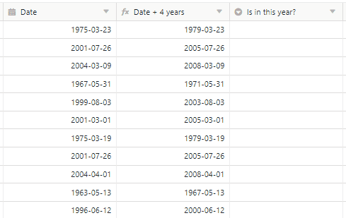 I have a column with dates and another one, where I add 4 years to that date via dateadd().