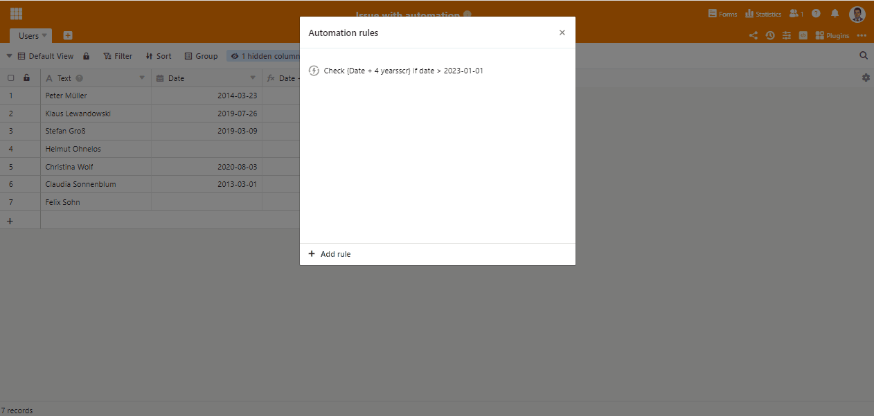 Now, if I use the values of this column in a automation rule i.e. to check, if the calculated date is within this year, the check never works.