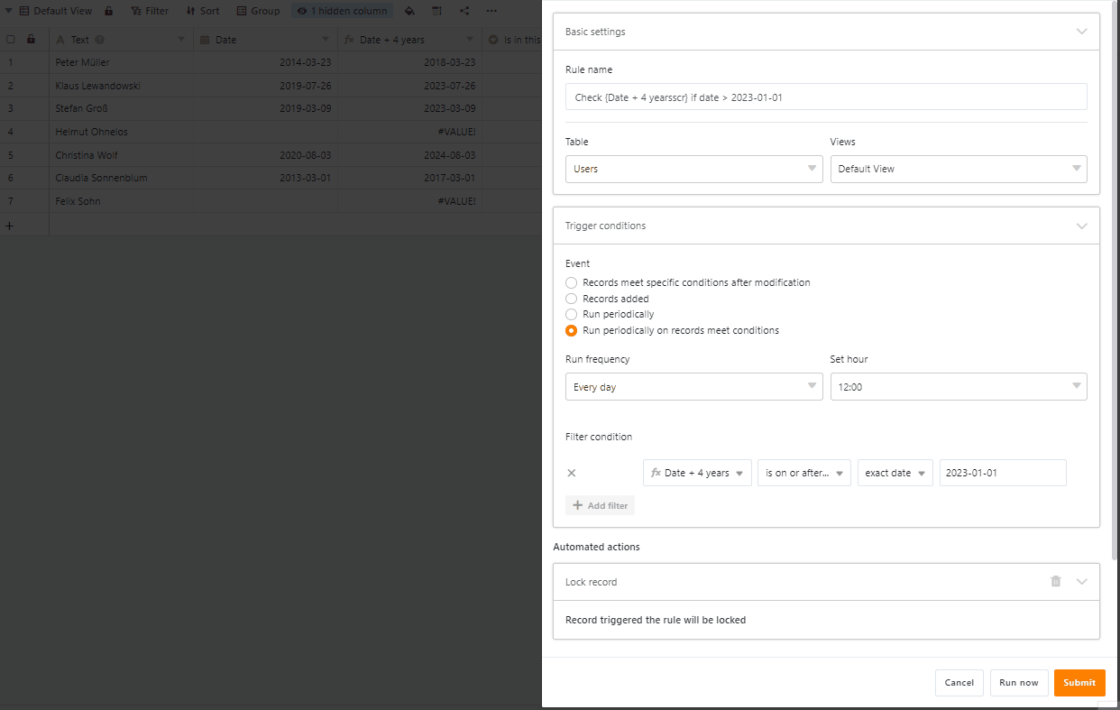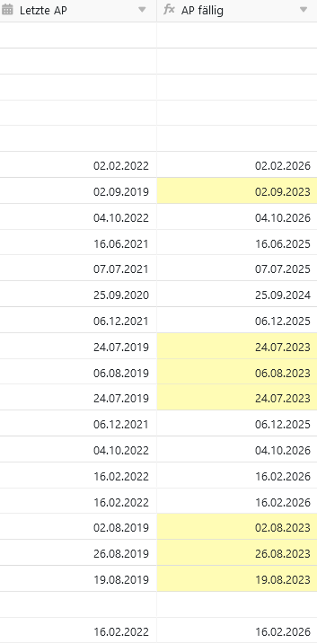 Interestingly, if I change that formula to be year({AP lällig}) - year({Letzte AP}), it still gives the correct integer in the column, but the notice gets not fired.